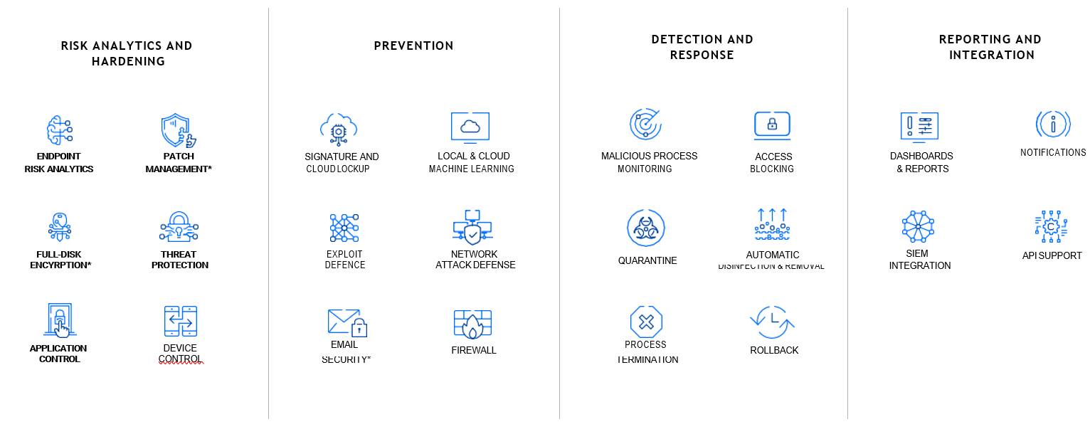 Protecția completă împotriva ransomware-ului la nivel de endpoint este esențială, deoarece endpoint-urile reprezintă căi de acces către servere extrem de valoroase și către alte ținte care dețin informații brevetate, datele clienților, detalii bancare și alte bunuri valoroase care constituie proprietate intelectuală. Protecția împotriva atacurilor ransomware implică înțelegerea întregului lanț de atac și maparea soluțiilor de protecție pentru fiecare etapă a atacului.